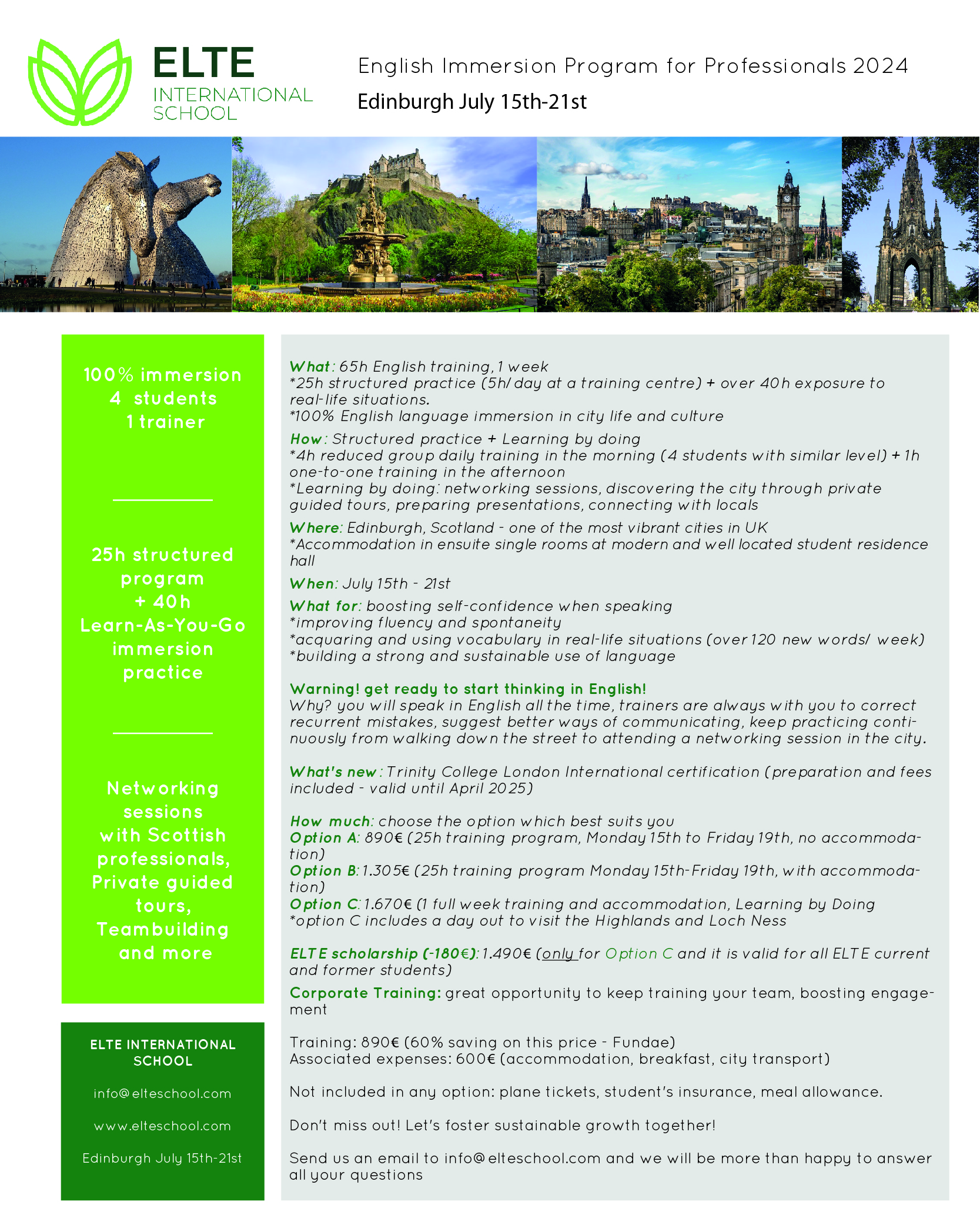 ELTE ENGLISH IMMERSION PROGRAM FOR PROFESSIONALS - EDINBURGH UK